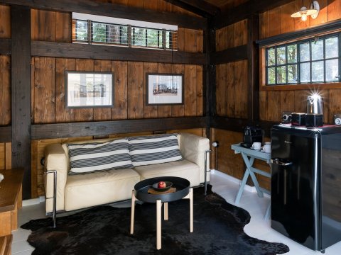Καθιστικό, καναπές, διπλό κρεβάτι (king-size), ράφια - ντουλάπα, μπάνιο με μπανιέρα, WC, σοφιτοπαταράκι με ένα κρεβάτι Δυνατότητα φιλοξενίας: από 2 έως 3 άτομα