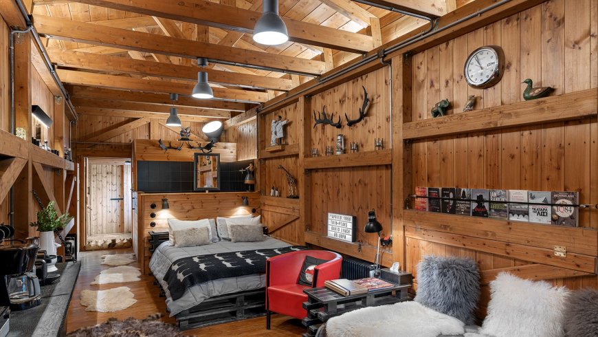 Καθιστικό (που γίνεται και κρεβάτι), πολυθρόνες, σκαμπώ, διπλό κρεβάτι (king-size), κουκέτα σε μικρό πατάρι που επικοινωνεί με τον ισόγειο χώρο με κατακόρυφη σκάλα, βιβλιοθήκη, γκαρνταρόμπα με ράγες κρέμασης, χώρος γιά αποσκευές, μπάνιο με μπανιέρα, WC Δυνατότητα φιλοξενίας: 2 άτομα + 2 παιδιά