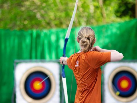 It is suitable for all ages over 8 years. Our smaller friends can easily participate with the help of adults as they will aim from a shorter distance and use a lighter bow.
