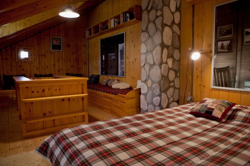Ground floor: Living room, sofa, double bed (king-size), drawers, bathroom Attic: Living room, double bed (king-size), drawers, bookcase