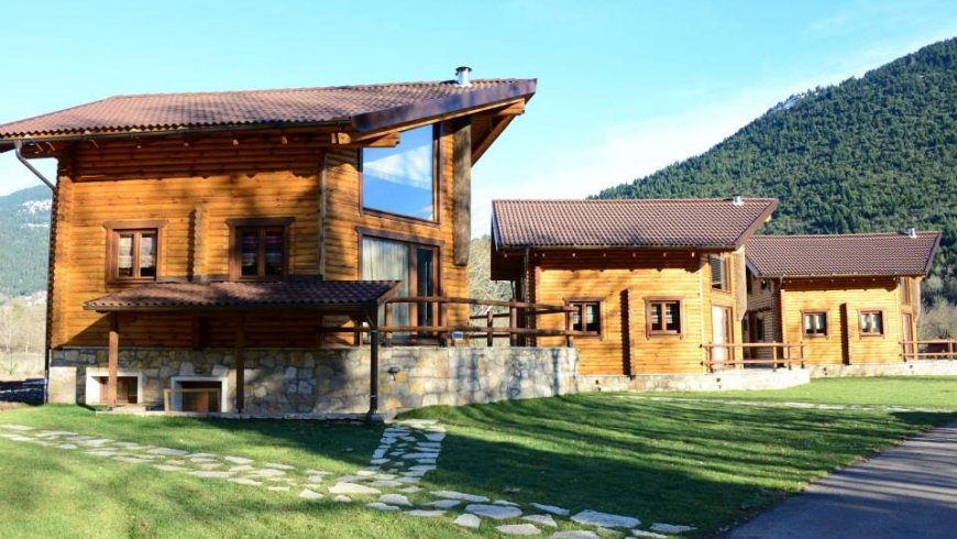 Wooden houses located in a green setting in Evritania, chalets offers 2-level detached houses with fireplaces and views of Mount Kaliakouda. It has wood-beamed ceilings and warm, earthy colors. On the ground floor there is a living room with a flat-screen TV, a kitchen and a bedroom, while the second bedroom is located in the attic. All units are equipped with a hydromassage shower cabin, and most also have a sauna with extra charge The view is unique with the background of Kaliakouda and Helidona dominating the landscape.