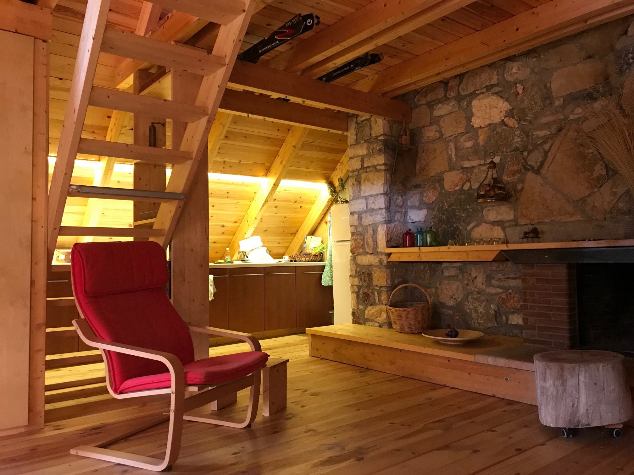 Chalet in the Forest is in the Chelmos-Vouraikos National Park, in Vrachni Village near Kalavrita and provides accommodation with fireplace and a garden. Opening to a terrace with river forest views, the unit is made of stone and wood, and fitted with a kitchen with a fridge. The unit has a dining area and a balcony.