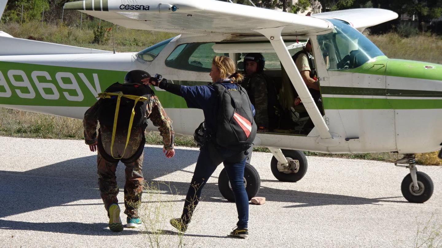 With the confidence and safety of the most experienced instructor in Greece, with more than 7,500 jumps, who has been going up and down the skies continuously since 1990. After a few minutes of training, he will put on your special equipment and you will board our plane. Reaching the exit height, the trainer will tie you to the special kit, and after checking you again, the door will be opened by our experienced pilot with over 4,600 flight hours.