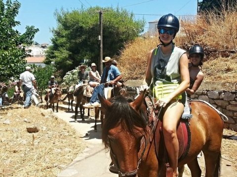 Route: Coast & inland road. Terrain: Level road, country tracks & steps. Level : All standards. Duration : 1 hour one way, or 2 hour circular route. Cost : 1 hour €60 one way if you want to spend time in the beach and return by walking or etc, or 2 hour €70 return per horse Any additional time required will be charged at €20 per half hour and only possible if there isn't another trek booked after.